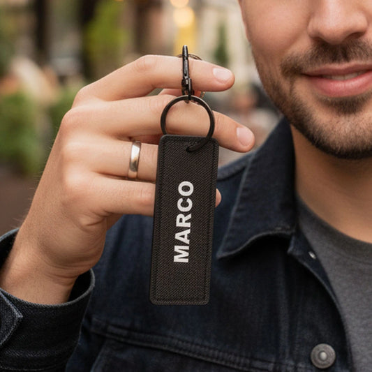 Portachiavi personalizzabile con Nome e Frase - Portachiavi in Pelle Saffiano RettangolarePrezzo di listino 18,90 €Prezzo di listinoPrezzo unitario per-