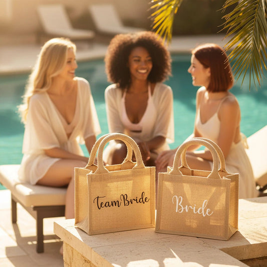 Set 5 Borse Juta "Bride - Team Bride" per Addio al NubilatoPrezzo di listino 74,90 €Prezzo di listinoPrezzo unitario per89,90 €Prezzo scontato 74,90 €In offerta