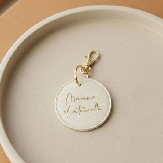 Portachiavi Rotondo con Nome e Frase - Portachiavi in Pelle Saffiano