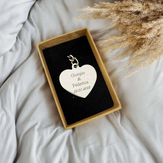 Portachiavi a Forma di Cuore con Incisione - Personalizzato con Nomi ed una Data Speciale
