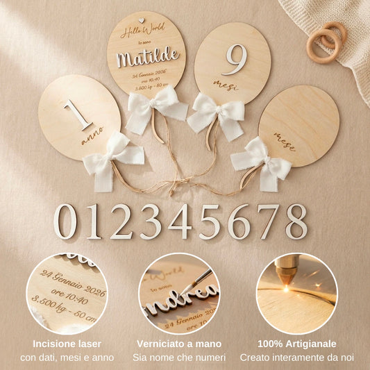 Palloncini in Legno Personalizzati Nascita – Set Ricordo con Numeri Intercambiabili