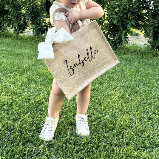 Coordinato di Borse Mare in Juta: Grande e Piccola - Personalizzabili con Nome e Fiocco