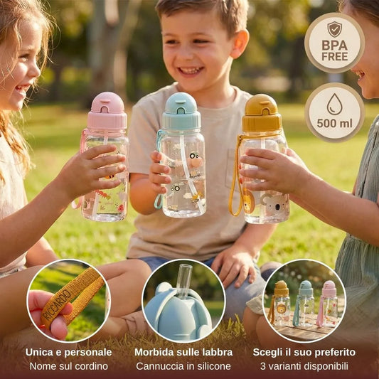 Borraccia per Bambini Personalizzabile con Cannuccia - Disponibile in 3 Modelli